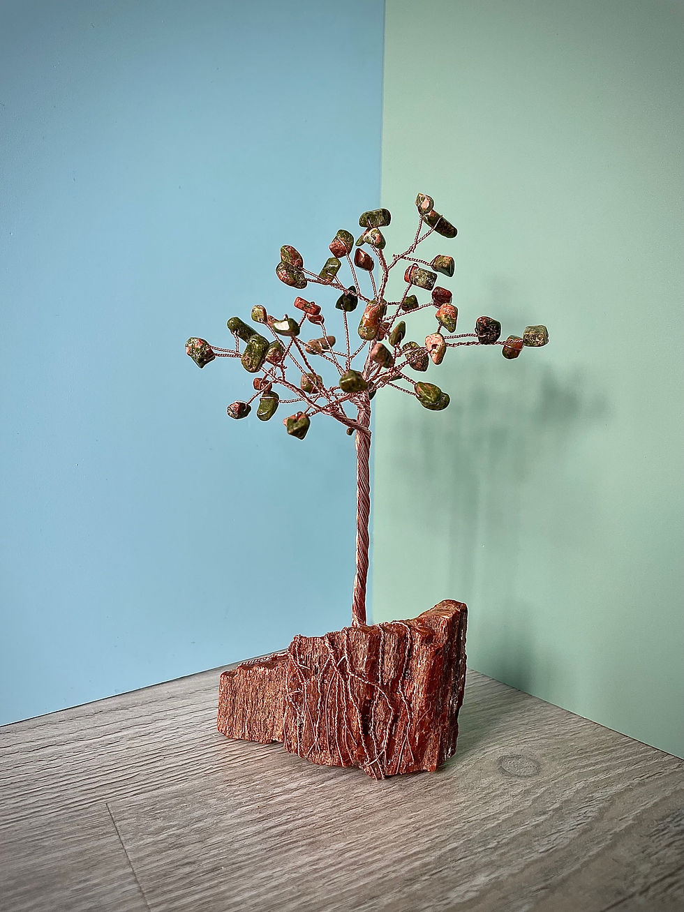 “Grounded in Gratitude” Unakite & Copper Wire Tree on Petrified Wood Base