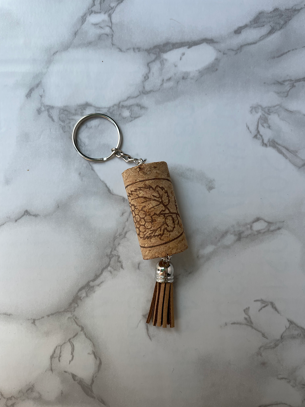 Upcycled Wine Cork Silver Keychain with Purple Tassel